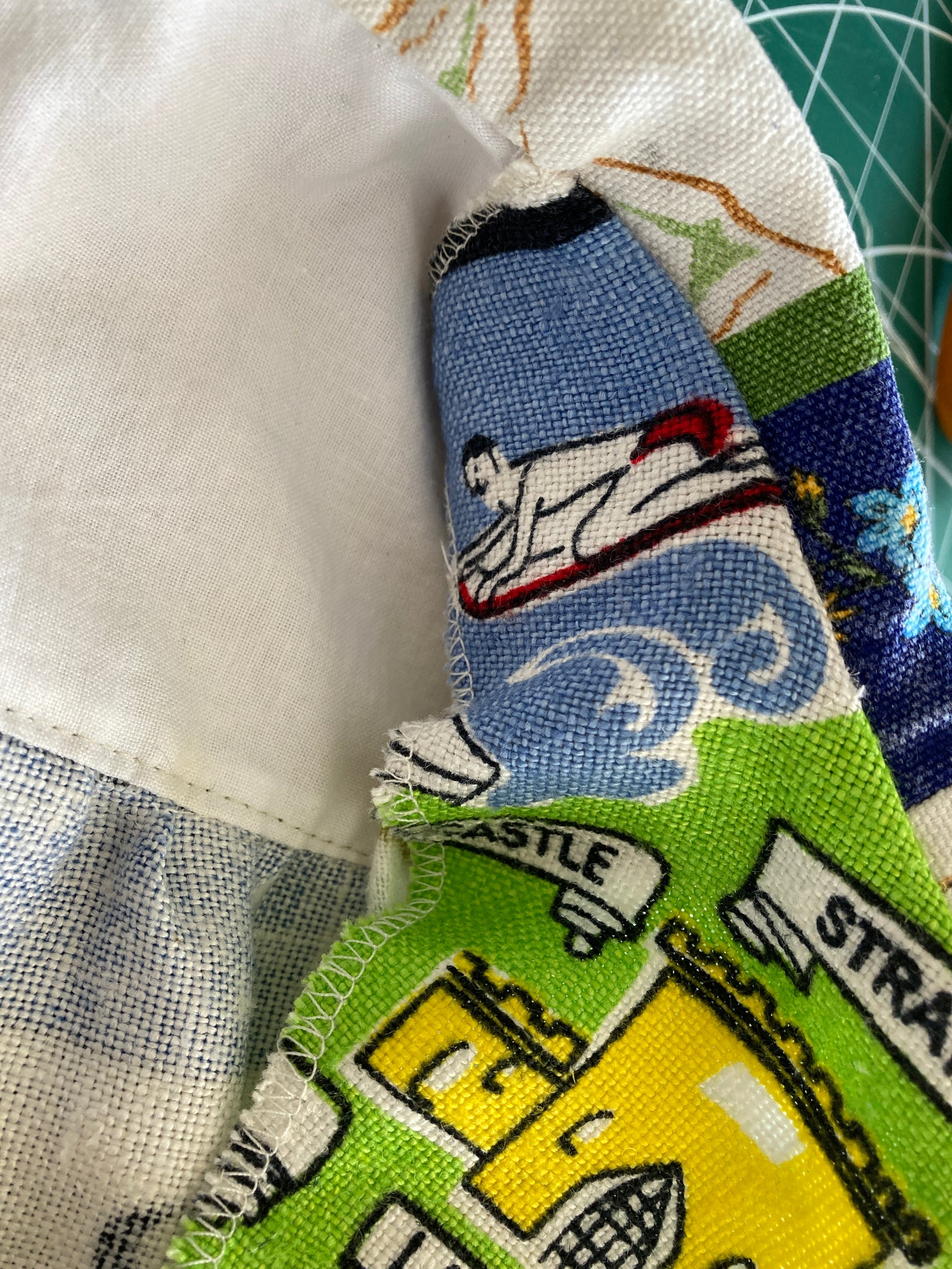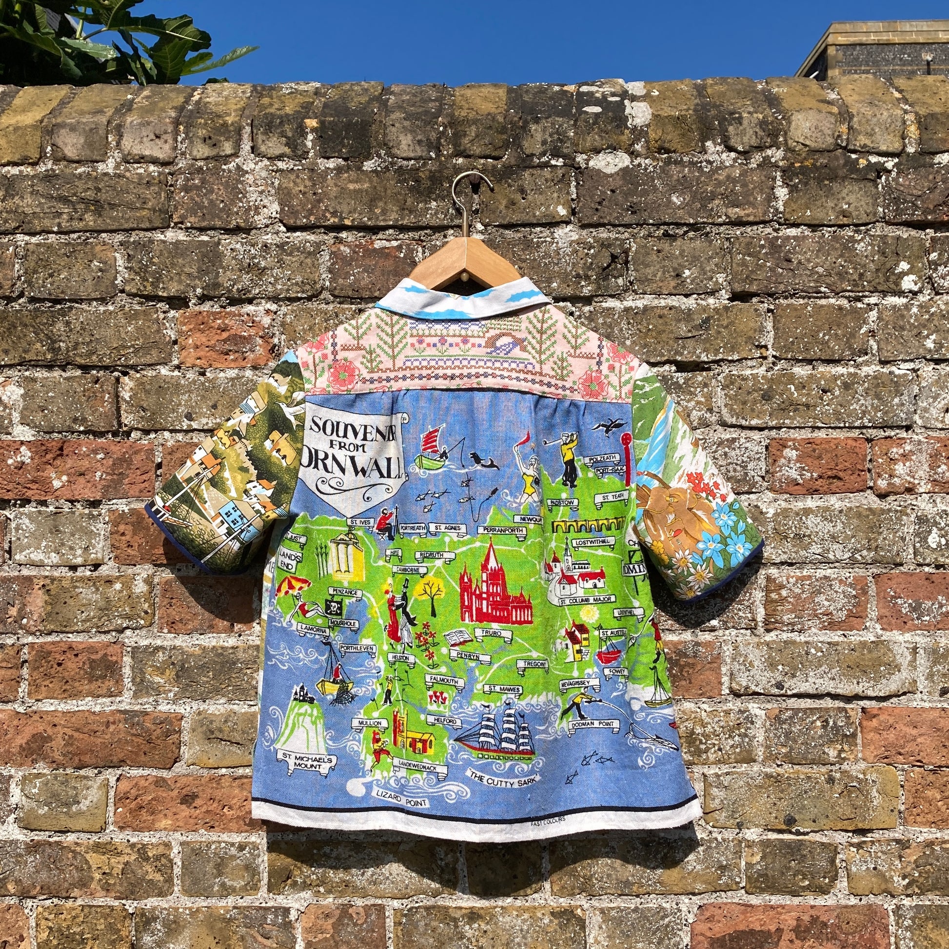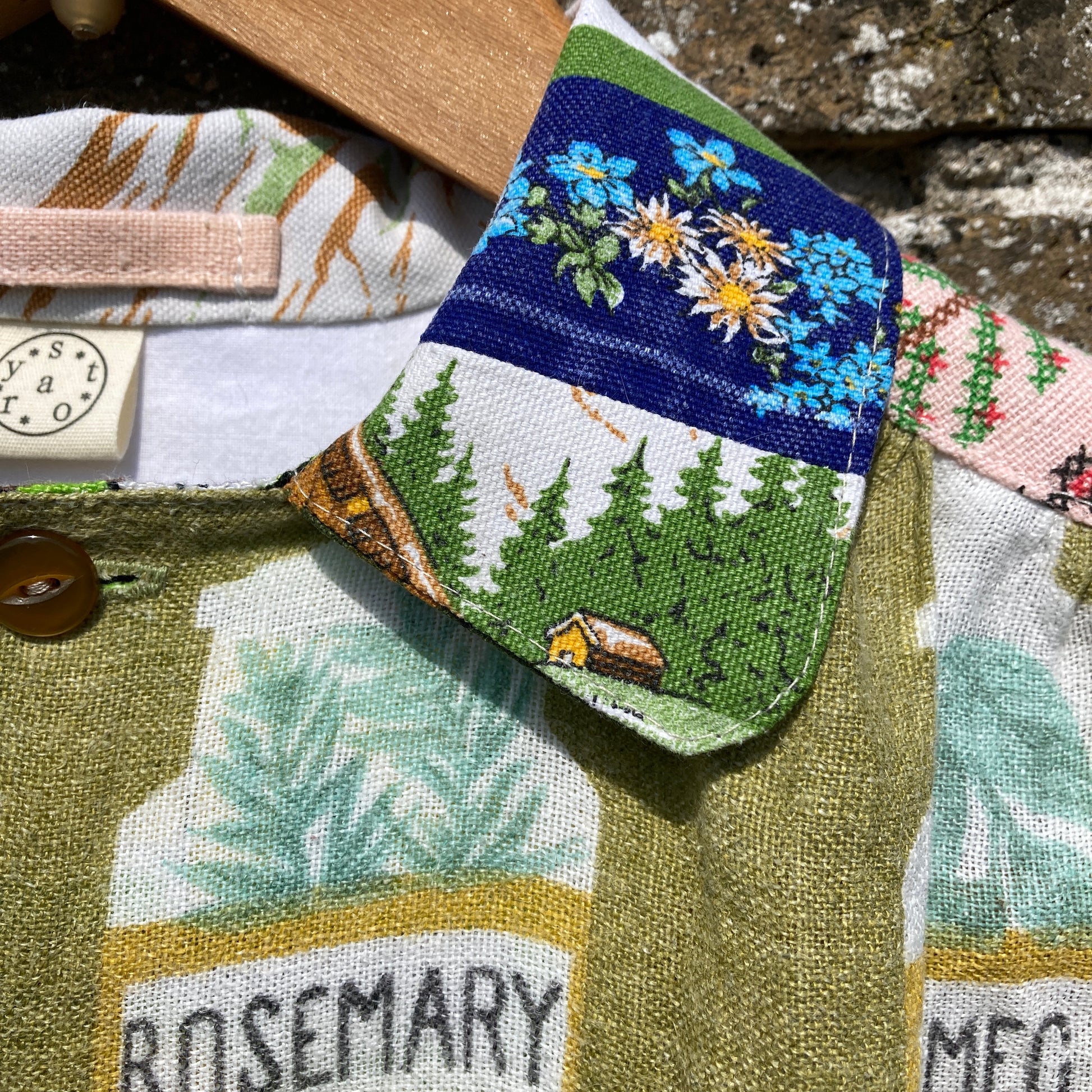 Summer shirt hand made from six recycled 1970s cotton and linen tea towels.