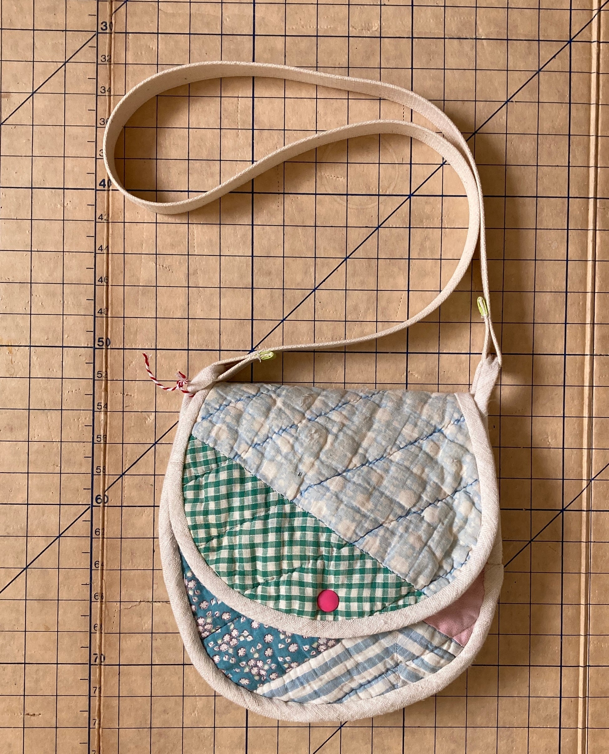 I made as many of these shoulder bags as I could from the 'good bits' of an antique patchwork quilt I found that was quite damaged but too beautiful not to save.