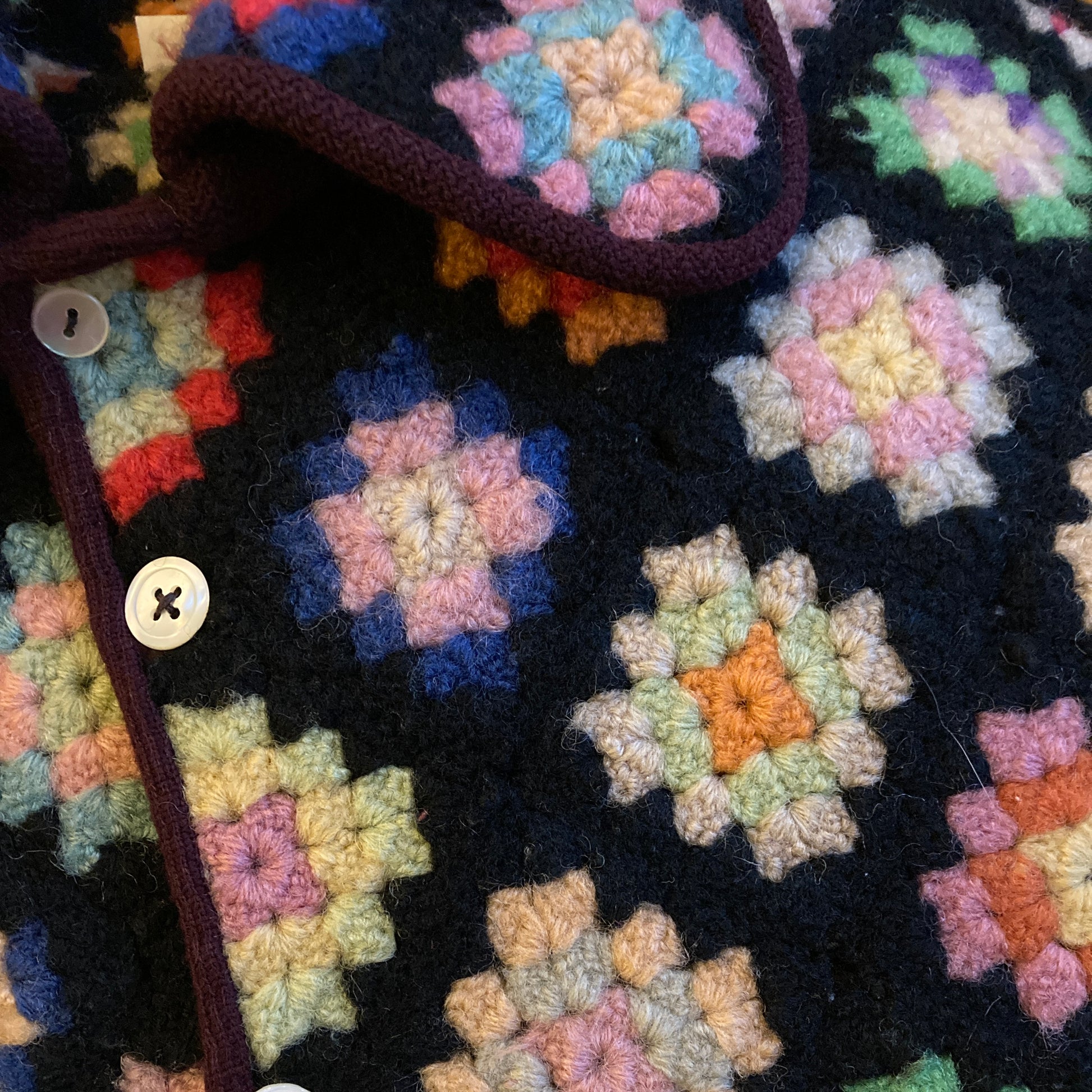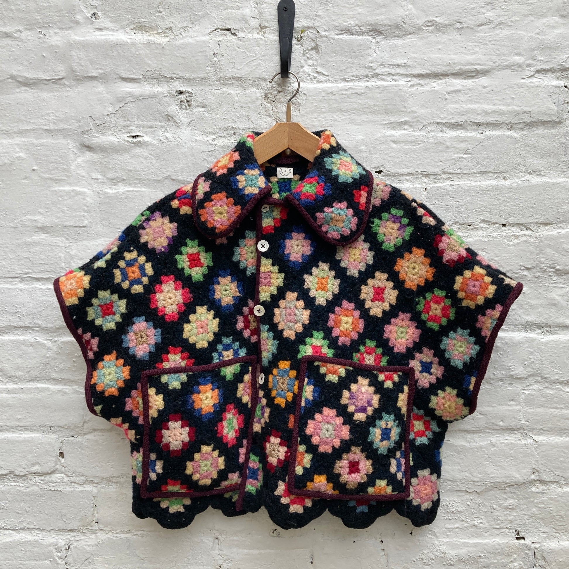 Super cosy little boxy jacket/shrug/winter warmer made from a reclaimed wool crochet blanket. Ideal for layering.