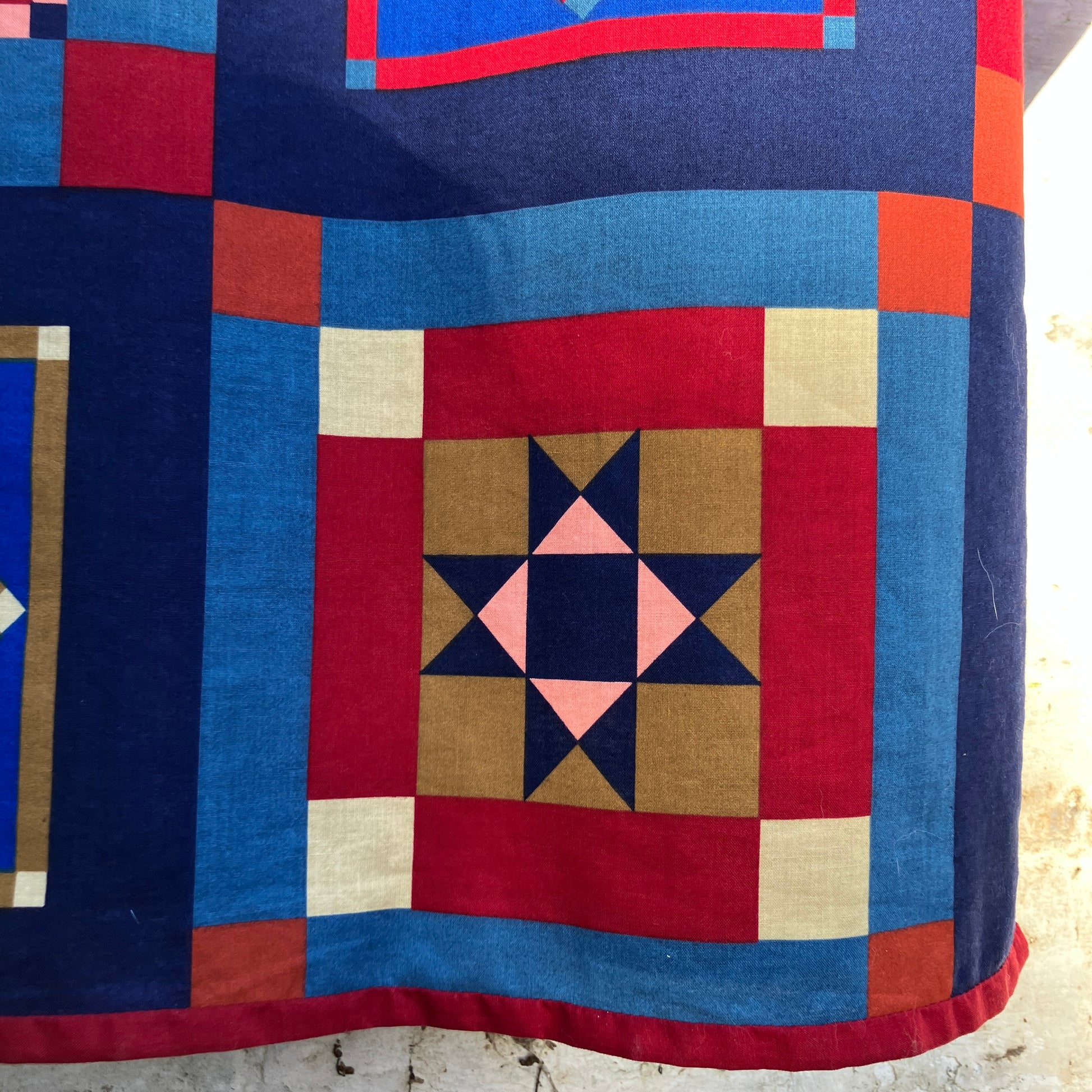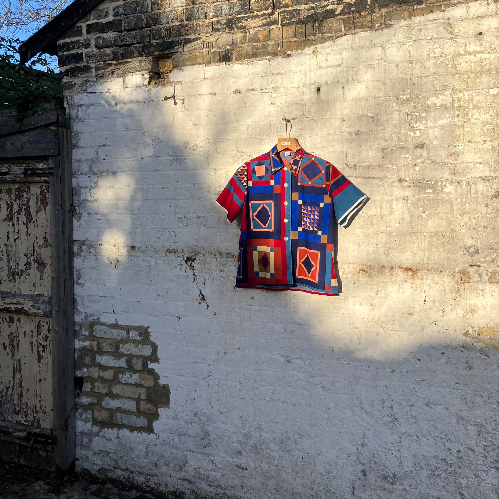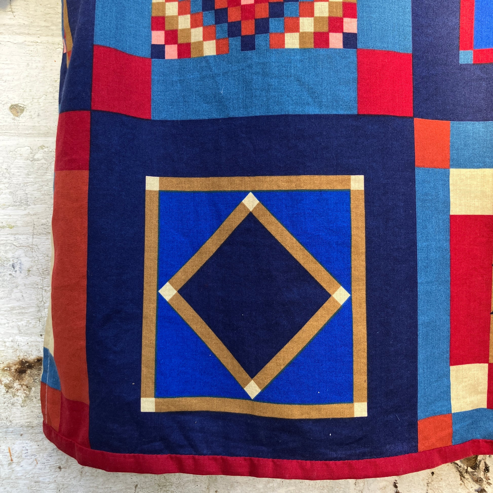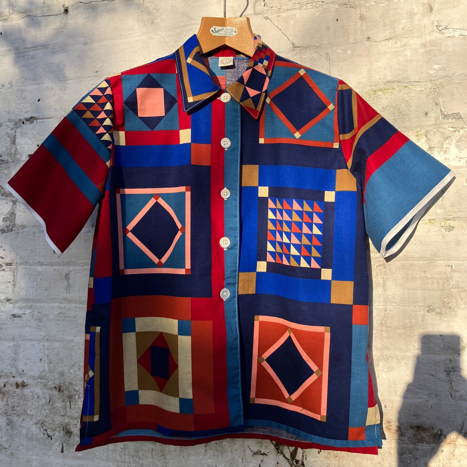 Simple, no-gathers shirt made from a panel of faux-patchwork-print cotton by Joan Kessler that I think dates from the 80s. I absolutely love all the colours and the details in the different patchwork blocks - no two the same.